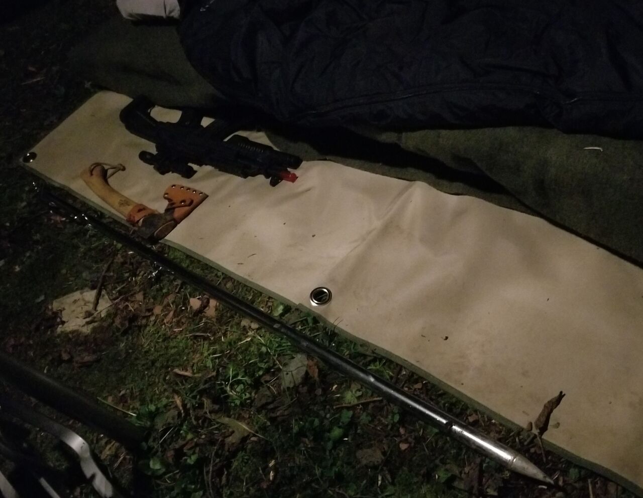 斧(切る)→いざの時にテント裂いて逃げるか振り回す