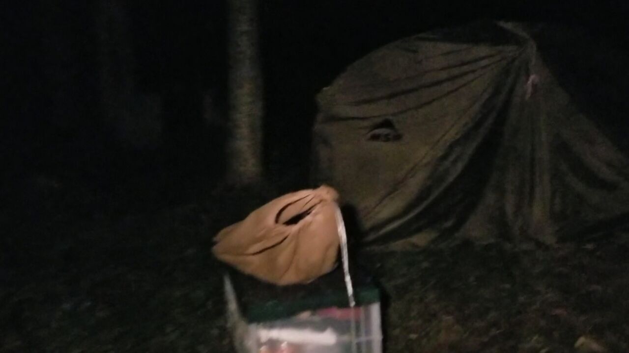 ライト当てたらすぐテントから少し離れ